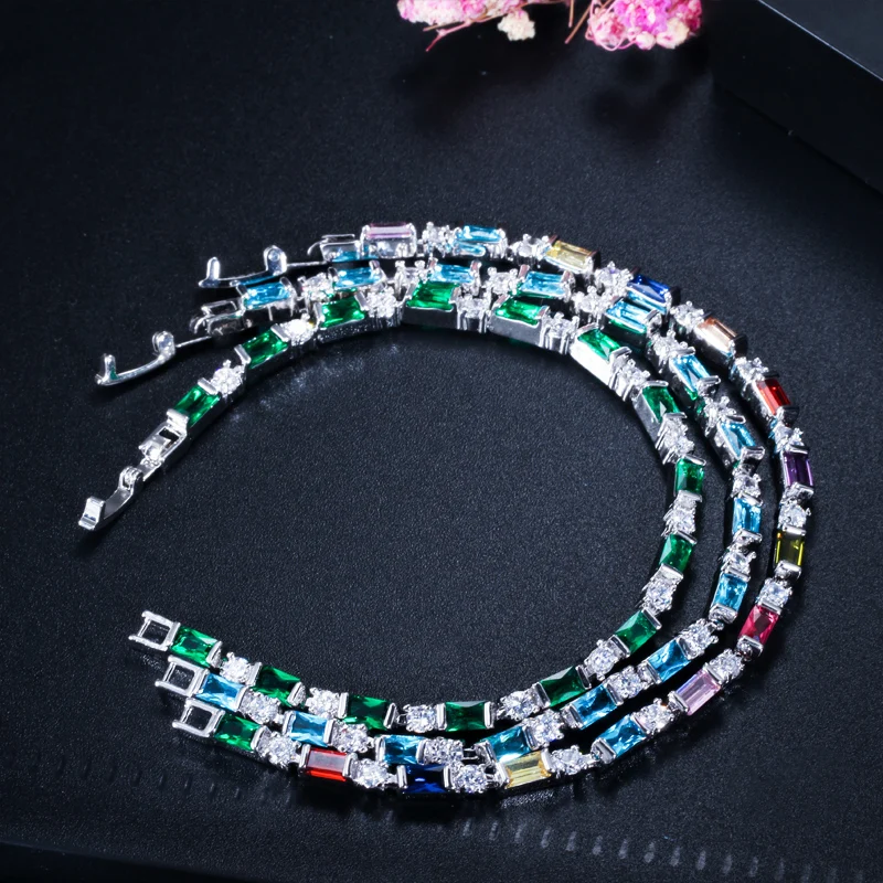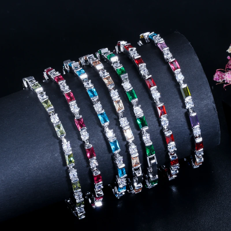 CWWZircons Fashion CZ Charm Lovely Red Green Blue Austrian Crystal Tennis Bracelets for Women Christmas New Year CB087